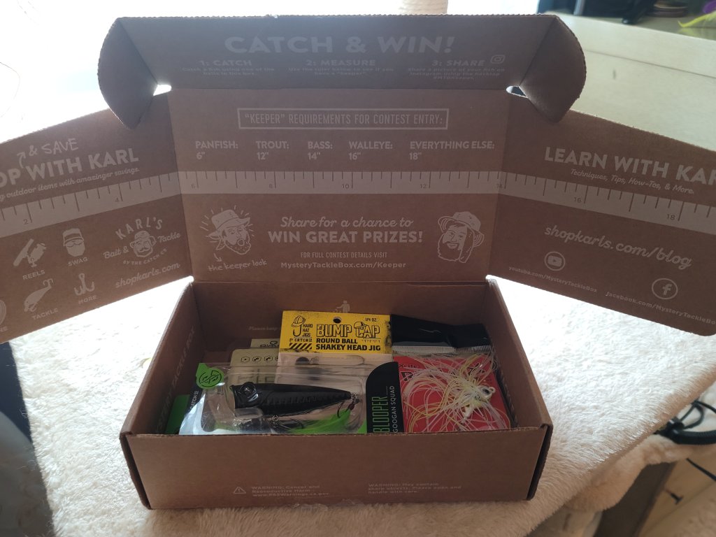 Mystery tackle box number two! This month I decided to try out Karl’s Bait & Tackle Mystery Tackle Box. They are pretty prominent on the search if you just Google “mystery tackle box subscriptions” and they seem to have a pretty good reputation. There were lots of positive reviews on their site and others. Here’s what I thought: