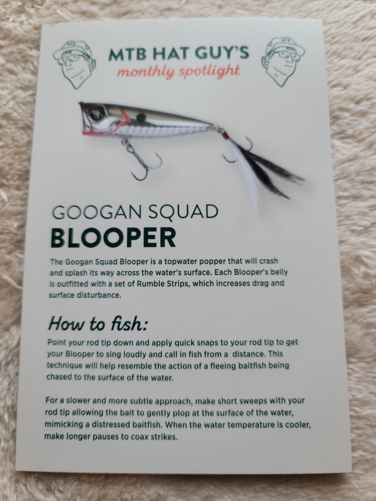 Contents (add photos) – They did a good job with the contents in this box, I have to say that I was happy with everything I received, including a catch-co sticker! After looking up retail on all the items, average pricing for all of these items separately would have been about 27.00 so I saved 7 bucks, didn’t have to go to a retail store OR pay for shipping! I felt that the variety was good too for the price. They also included a card with information about the top-water lure that was included with tips on how to use it and where it might server the best use on the water which I think is great! Anyone just learning to fish with the lure would benefit from the information. There’s also a pamphlet in the box with fishing tips and some information about the company.