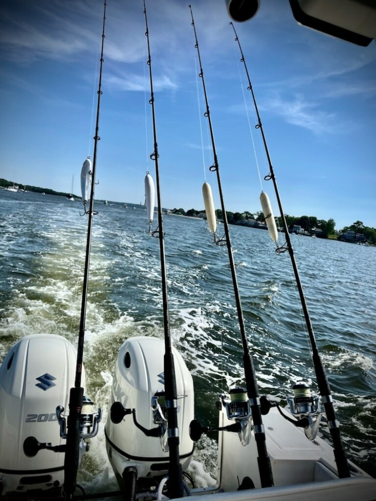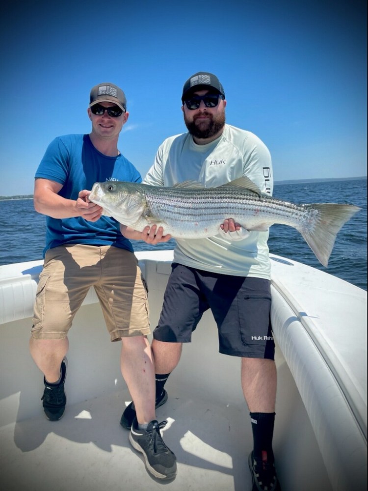 Ryan reported from both saltwater and freshwater this week! He had an incredible weekend out on the Cape hitting both Buzzards Bay and Cape Cod bay. He said that the striper bite is absolutely to die for right now. They pulled over 130 stripers onto the deck on Sunday with the big being 48″ and 44 pounds caught by his buddy. Multiple 35-40″ fish and tons of slots. Ryan said that they got them all on giant top water hogy lures. They will be going back for another smackdown!