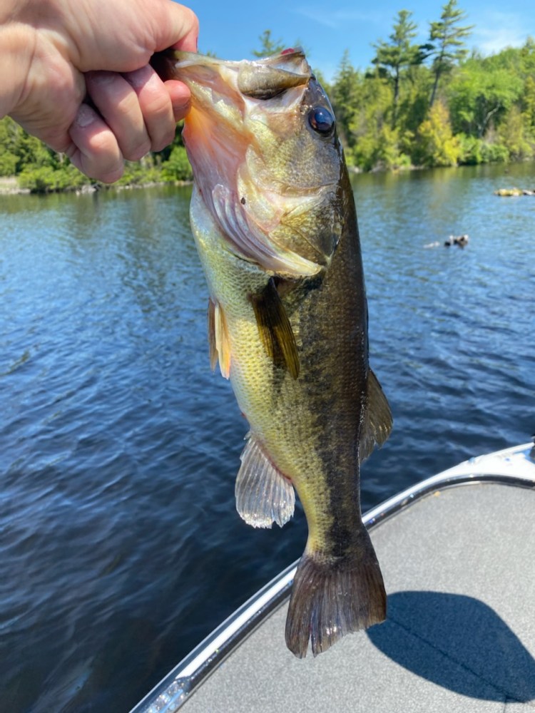 Tim pre-fished Onota last Friday morning, concentrating on fishing deeper weeds with weighted soft plastics and was able to get two smallies. His buddy fished ned rigs closer to shore and had a decent day with five plus bass. Water temps were reported at 68 degrees. Tournament day on Sunday for Tim and he took 4th. He said he started off looking for smallies, found one near a bed shallow and one other deeper bed that had 4 largies lurking. Unfortunately, he could not get any to bite past the initial pick up. Then they would move out of bed and spit it out. He moved shallow where he proceeded to fill a limit with fish off of lily pads , docks, and weeds with senkos and chatterbait. Top waters elicited a few blow ups, but no hook ups. Tim’s biggest fish went 4 lbs out of 1 foot of water and he reports that the smallies were a mix of spawners and post spawners.