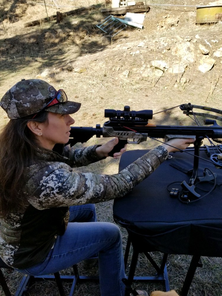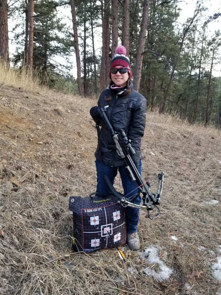 When asked about how she got into hunting and fishing, Rocky said it was always around, but it wasn’t until a few years ago she really got into it. I’ve been exposed to hunting and fishing most of my life. But after my mom died, I just didn’t do it much anymore, except a little fishing. When I went to live with my uncle, he hunted so I would help him with game cleaning but I didn’t go out hunting with him. It was usually just the “guys” and as a teenager, I didn’t care as much or it could have been the circumstances as to why I didn’t want to go, who knows. My family all used to hunt, but it wasn’t until my husband bought me my first crossbow a few years ago it seemed to spark that old interest. I started practicing more and reading and watching hunting shows, started fishing more with my son until we moved to CO and the possibilities of hunting/fishing opened up even more.