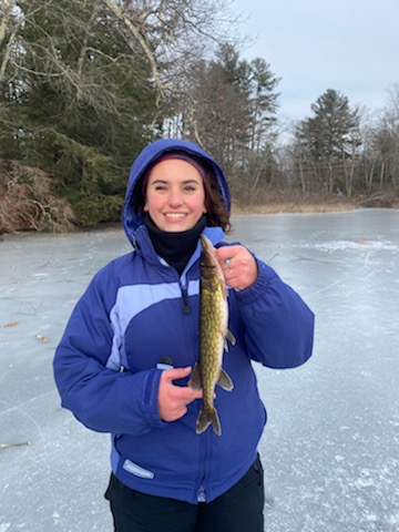 I was able to get out with the crew this Sunday on a small body of water in the hill towns. We had 10 plus inches of ice and ended up going through all of our bait with most of our action first thing in the morning right after sunrise. The water depths varied from about 6-10 feet and we fished about a foot and a half off the bottom landing a nice variety pickerel, perch, and a couple small bass. Best part about being on the ice was having venison for breakfast.