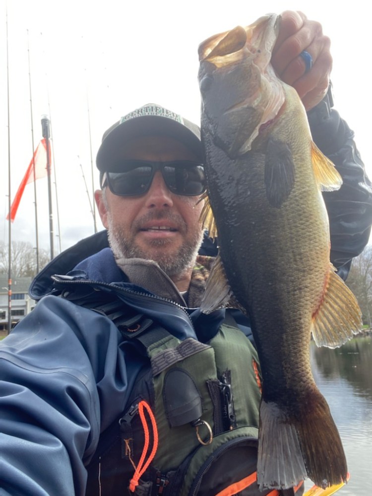 Nelson also headed down to CT for the Three Belles Outfitters tournament series stop #1. This was at a pond he had never fished before but after a little map study he had picked out some areas to check out. Nelson said that spot #1, although it had plenty of structure in the form of lay downs and even some submerged trees, the fish just weren’t biting in that area. The water temperature was just under 50 degrees.