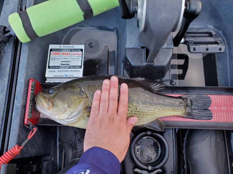 Nelson’s second spot was a small shallow river that came into the lake. As he made his way into the river the water temp started to rise and it was 53 degrees in this area, which is where he found the biting fish. In just over 45 minutes Nelson caught 5 bass, all of them in less than a foot of water which all hit a weightless, weedless creature bait. I stayed in that area for another hour with only a couple more bites but I missed the hook set. Those 5 bass were enough to put me in first place and I ended up taking the win on this one.