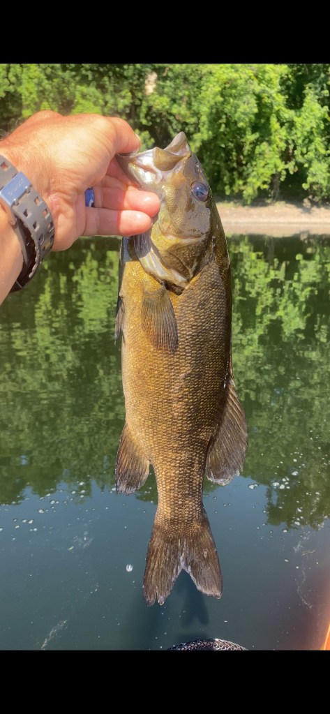 Jerry’s week started at the Elite Kayak Fishing Tournament on the Connecticut river where he said it was a rough experience pre-fishing at the most Northern launch. It did not produce any size to the smallmouth that he caught. He then took a gamble on another boat launch a bit further south where there is a long stretch of river which is shallow, except for a couple deep hole where he caught his first smallmouth in eight feet of water on a green pumpkin tungsten jig. First 12.5 inches, followed by a 14incher. Jerry tried the ned next and it was one after another from 10 to 18 inches. He spent 8 hours on a half mile stretch of river just enjoying the smallmouth bass fight in current. So get out on the river and have some fun fishing for smallmouth!