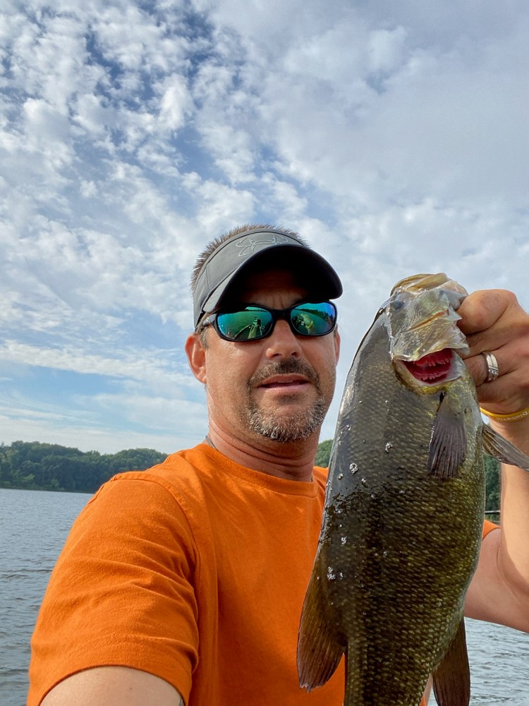 Tim was able to get out on the Connecticut River at Barton’s cove for some smallie fishing where he said that he had a little top water action early, but not fast and furious. He said that they found some groups of fish on shallow flats and a soft plastic jerkbait was the ticket; as was a plastic stick worm. We ended the day with 15 smallies and one largie.