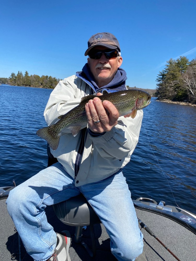 Nelson got out a few times this week from the bank. His first outing was in Eastern Mass on a small pond near the MAKB banquet venue, and he caught two small bass on a chatter bait. Nelson’s second outing was in the valley at Forest Lake where he had plenty of action from the stocked trout, but never caught one. They would hit my lure and even follow it right up to the shoreline but never got the hook. Many places have been stocked 2-3 times already this season. Get out there and get on the action!