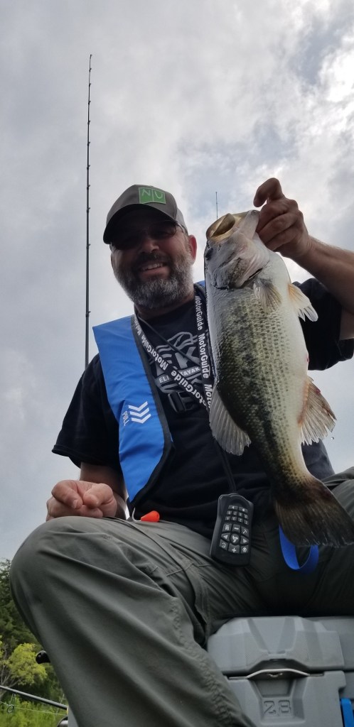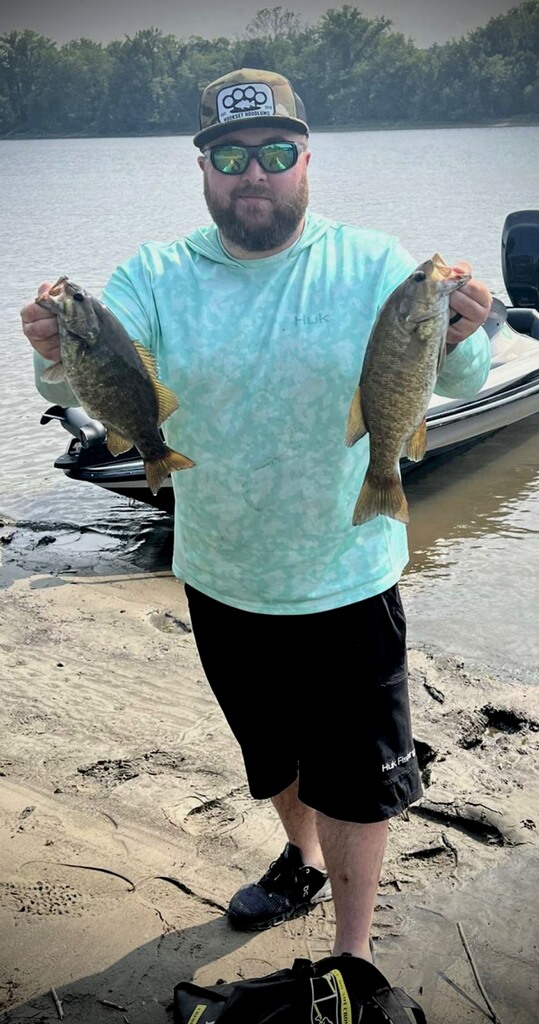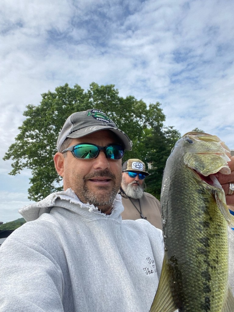 Andy is out with his son in Oklahoma! Lake Thunderbird has produced a few saugeye ( hybrids) and some good size crappie so far for them. Andy and his son scrapped their plans to fish in Texas earlier this week due to threats of severe weather, so they went to Lake Ten Killer in eastern Oklahoma and fished in severe heat. All week long was in the 90’s here with no cloud cover while we were out. Clear water and plentiful baitfish for the bass to feed on made a fun day in the Ozark mountains. This lake reminded me of fishing back home in New England but on a much larger scale. If you get the chance to fish here, do it!