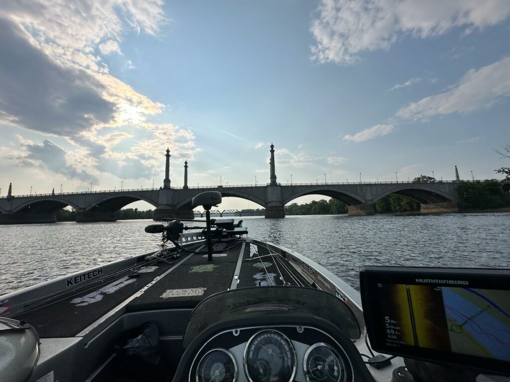 Perhaps the craziest moment of the day, he snagged a 4 foot sturgeon in the side with a crank bait; all of a sudden my reel was peeling and I thought it was a striper till about 35 ft from the boat this ungodly dinosaur jumped and broke off. Very dangerous section of the river. Saw 2 props folded and a lower unit ripped off. Please be safe on the river as it’s always changing. Make sure to keep updated on the newest maps.