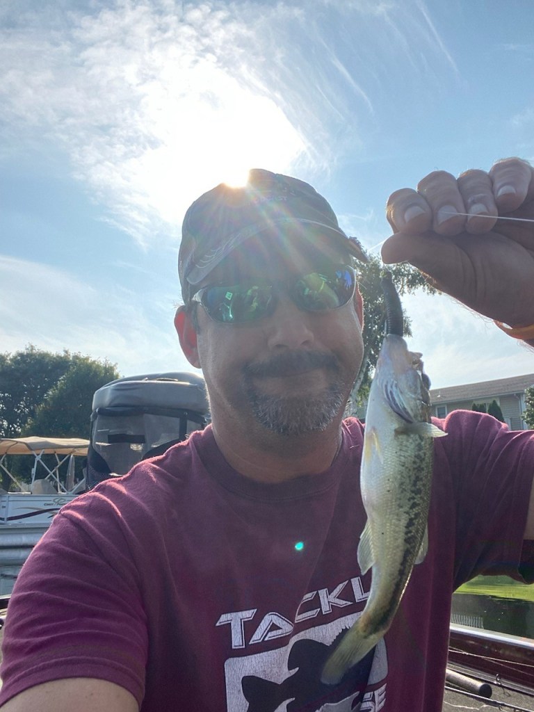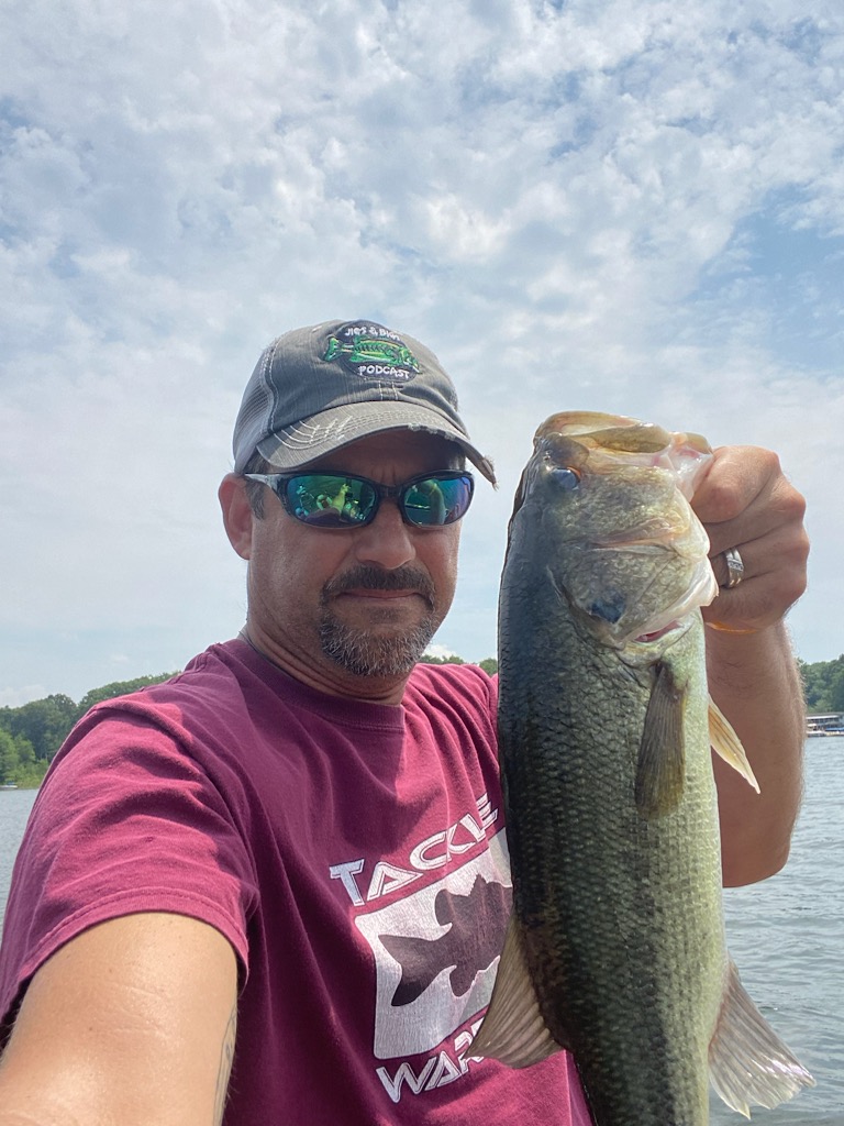 Tim’s second outing was yesterday and he reported water temperatures of 83 to 85 degrees, and a slow day of fishing; 7 fish, only 3 keepers. He said that everything came on a 16th oz weighted soft plastic on weed edges, weed mats, and deeper drop offs. The dock pattern for him with the Sanko has been pretty much nonexistent this year, which he said is surprising, but he believes that the heat has pushed these fish down into deeper water. Try something different, go a little bit deeper, hit some deep drops, some deep humps, deep holes, anything deeper where you think the fish may have moved.