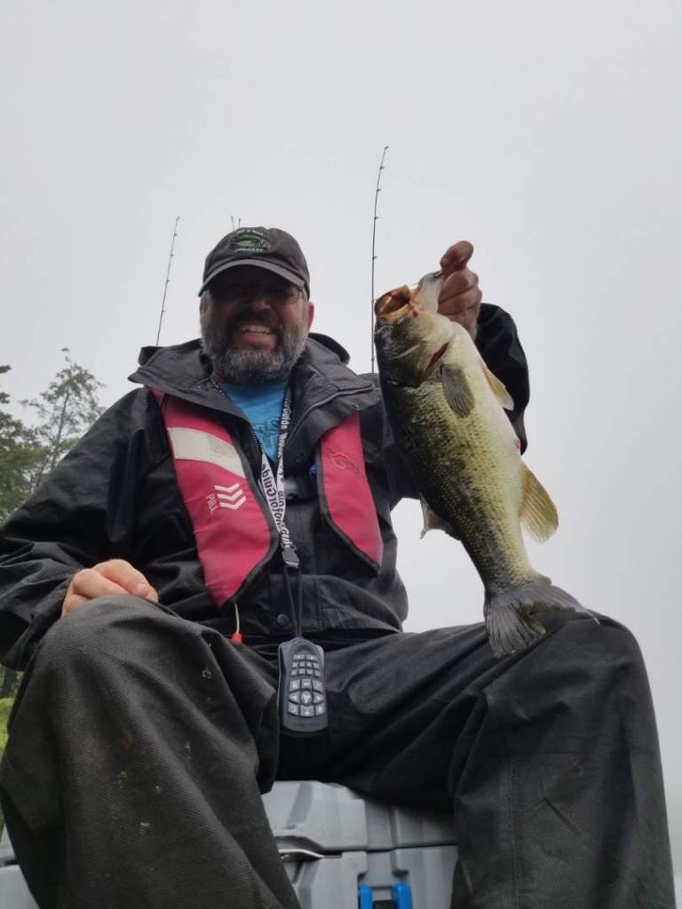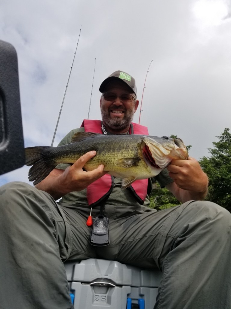 Nelson was able to get out this past weekend up north on the border of Vermont and New Hampshire on the CT river/Moore Reservoir for the Elite Kayak Fishing stop #3. He said that with reports of anglers catching mostly small fish up and down the area, he tried to find something different; something out of the way that most people wouldn’t try to do or access. Unfortunately after a 5 mile round trip to an area that looked great on the map, I found that it wasn’t accessible according to the tournament rules. Water levels were too low. His next and last pre fishing spot had a lot of bass in the area but they were mostly small, 8-10 inches. Not up to snuff for this tourney. Nelson said that on the morning of the tournament he went to check if the water levels had come up after getting some rain overnight but they were actually lower than previously and that was a huge bummer. He said that with no real plan he looked at the map and just picked a ramp and I went fishing.
