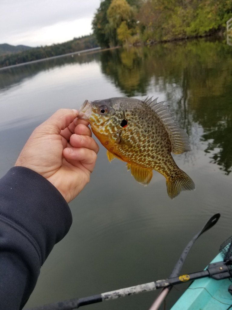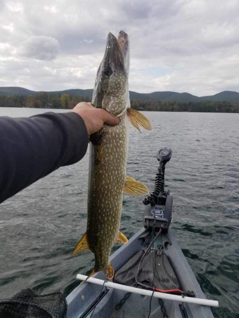 Jerry got out a few times for a few hours and reports that the water temperatures are dropping with the daily being in the mid to upper 50’s on Saturday down to 51 degrees by Tuesday. Saturday Jerry fished in Stockbridge and caught five largemouth on neko rigged soft plastic worms in green pumpkin. He also added that all the fish were caught in 8 to 10 feet of water in moderately heavy weeds. He also landed a number of bluegill on night crawlers, a couple pickerel on stick baits, and one rainbow trout on a neko rigged stick bait. Next, Jerry hit a large lake in Pittsfield throwing a spinnerbait. He ended up catching a 19 inch largemouth and three Northerns from 18 to 27 inches. Last, on Tuesday afternoon, Jerry went to a Becket lake water temp down to 51 degree and the bite was super slow, only catching one 20 inch pickerel and a 20 inch largemouth that weighed just under 5lbs.
