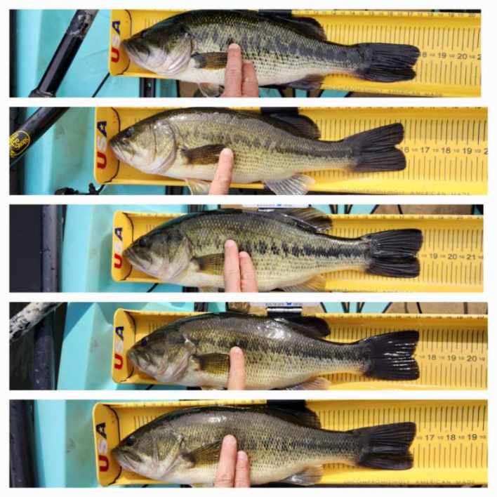 Today Tim got out to local Lake Congamond and reported that there were some beds in North Pond where the water temperature was 65 degrees. He said that there were lots of cruising fish near beds, but they weren’t super interested. Tim did catch 6 total fish, 5 largies and one smallie all on the 8 ounce ned head with soft plastic, and a rattle trap. We’re in the height of spawning, although middle and south seem to be a little bit behind north pond in water temperature so it should be good for the next week or so just remember put them right back where you catch them.